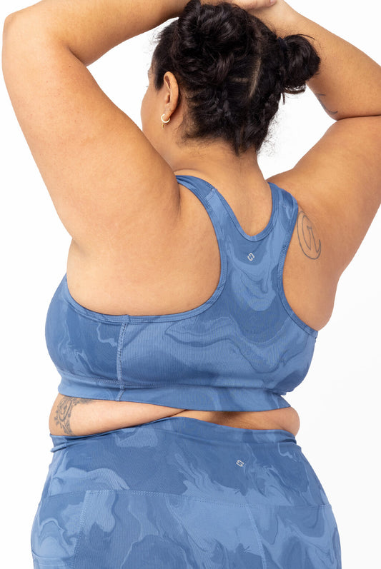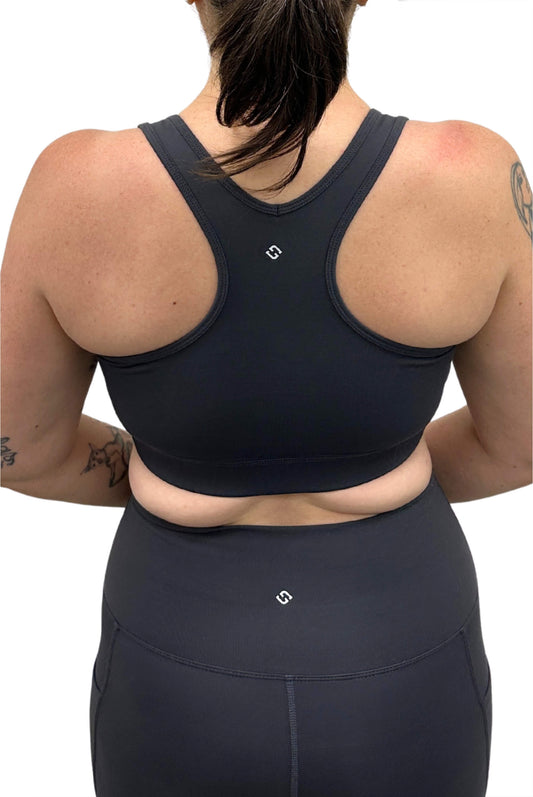 Our adjustable Zip Front Sports Bra is best for folks with larger busts.
