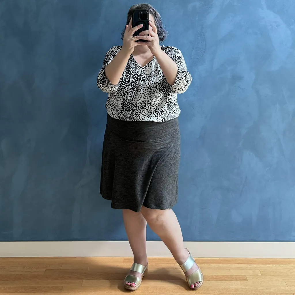 Our plus-size knee-length skort is super soft and easy to wear. With 9-inch shorts underneath and hidden pockets!