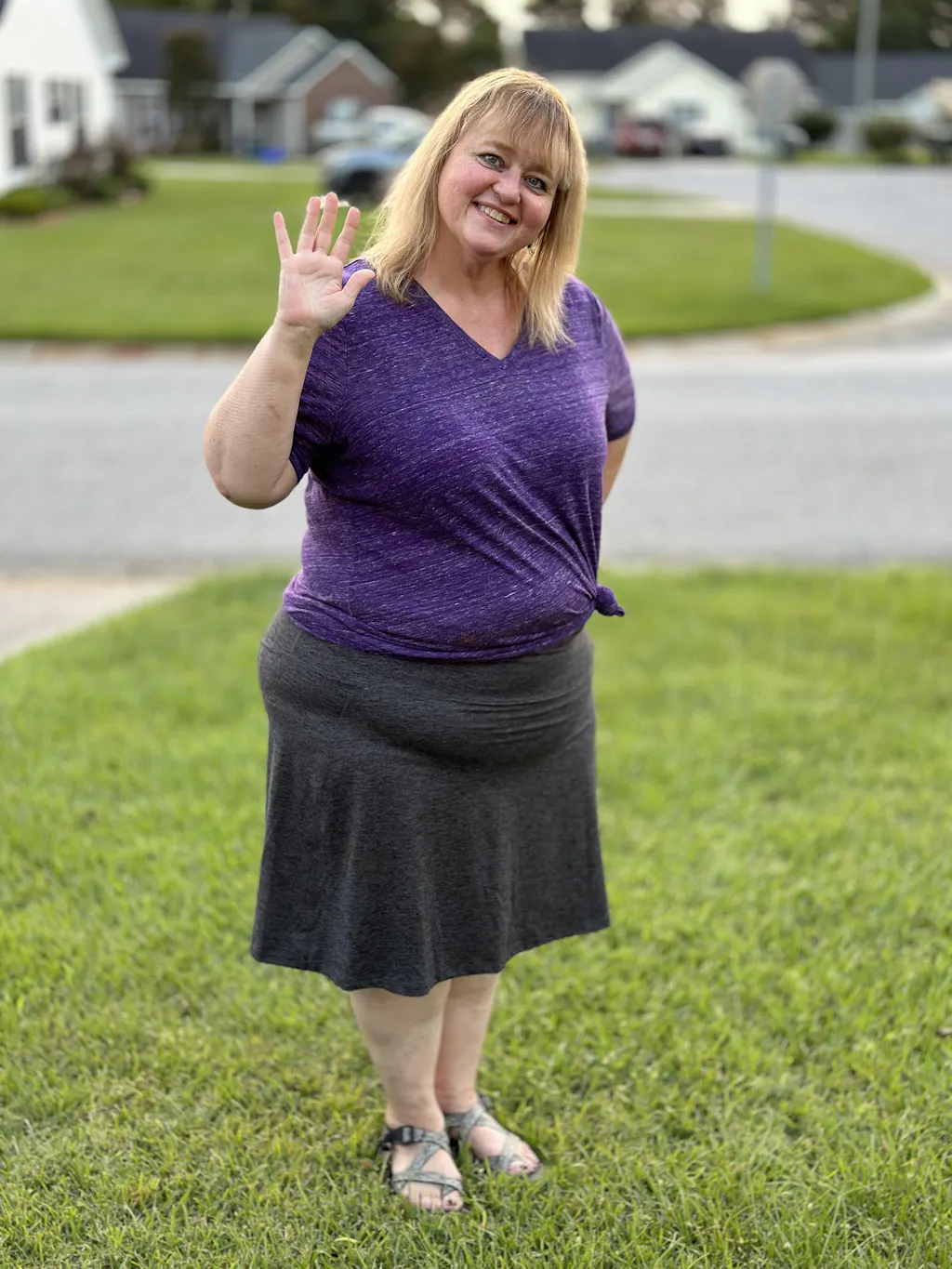 Hayley is wearing size 5X (Waist 60", Hip 73")